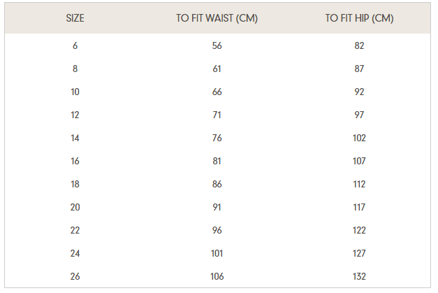 | Skirt | 4 | 6 | 8 | 10 | 12 | 14 | 16 | 18 | 20 | 22 | 24 | 26 | 28 | 30 | 32 |